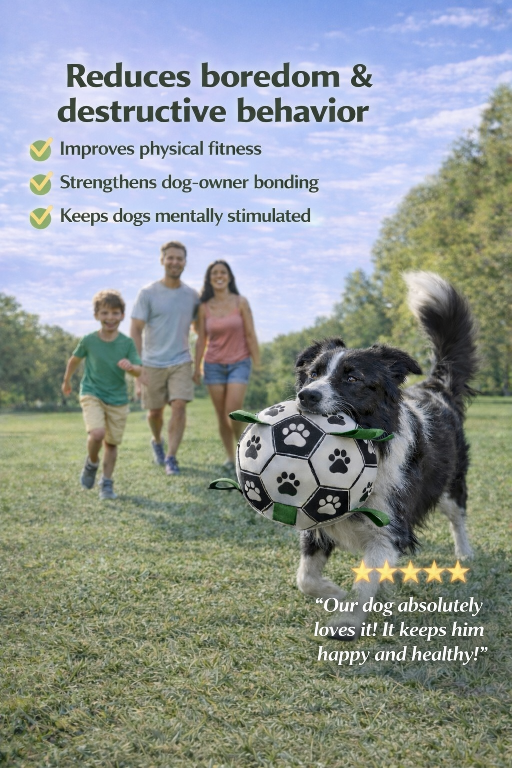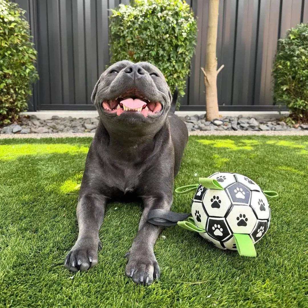 The PawPlay™ Interactive Soccer Ball is designed to keep dogs active, engaged, and entertained through fun, interactive play. Its durable construction and lightweight design encourage natural chasing, kicking, and running, helping burn energy while keeping dogs mentally stimulated.