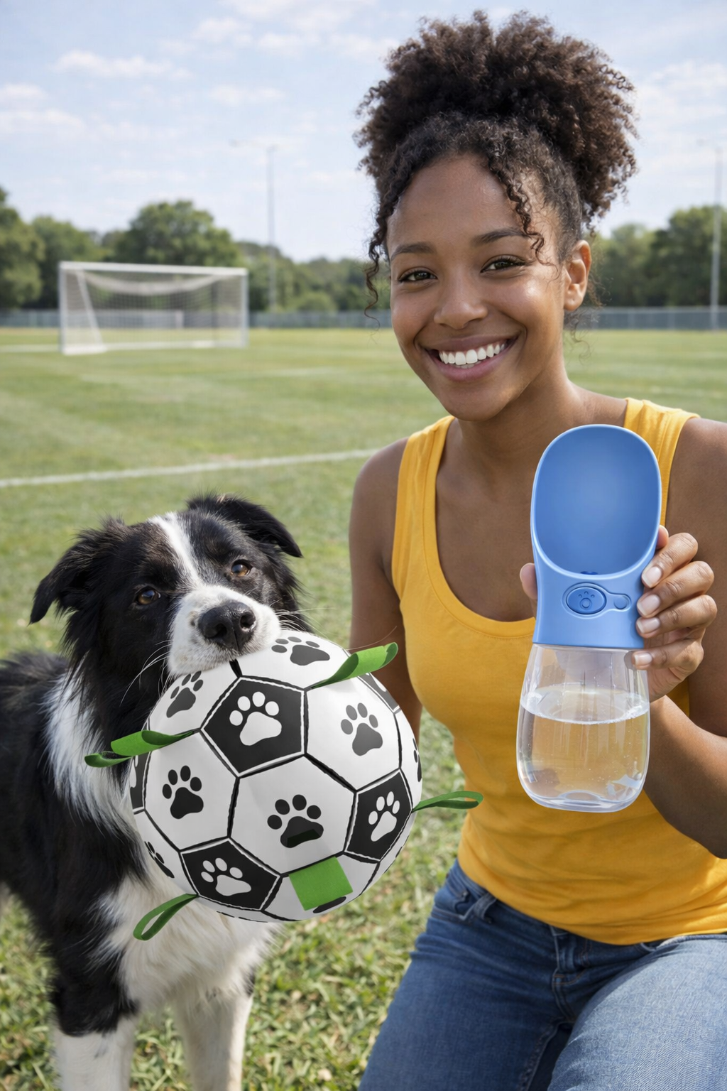 After energetic play — especially with toys like the PawPlay Soccer Ball — dogs need quick, easy access to clean water. The 2-in-1 Portable Dog Water Bottle & Food Bowl makes hydration simple with one-button water release, built-in bowl, and leakproof design, so your dog can drink anytime, anywhere without slowing down the fun.